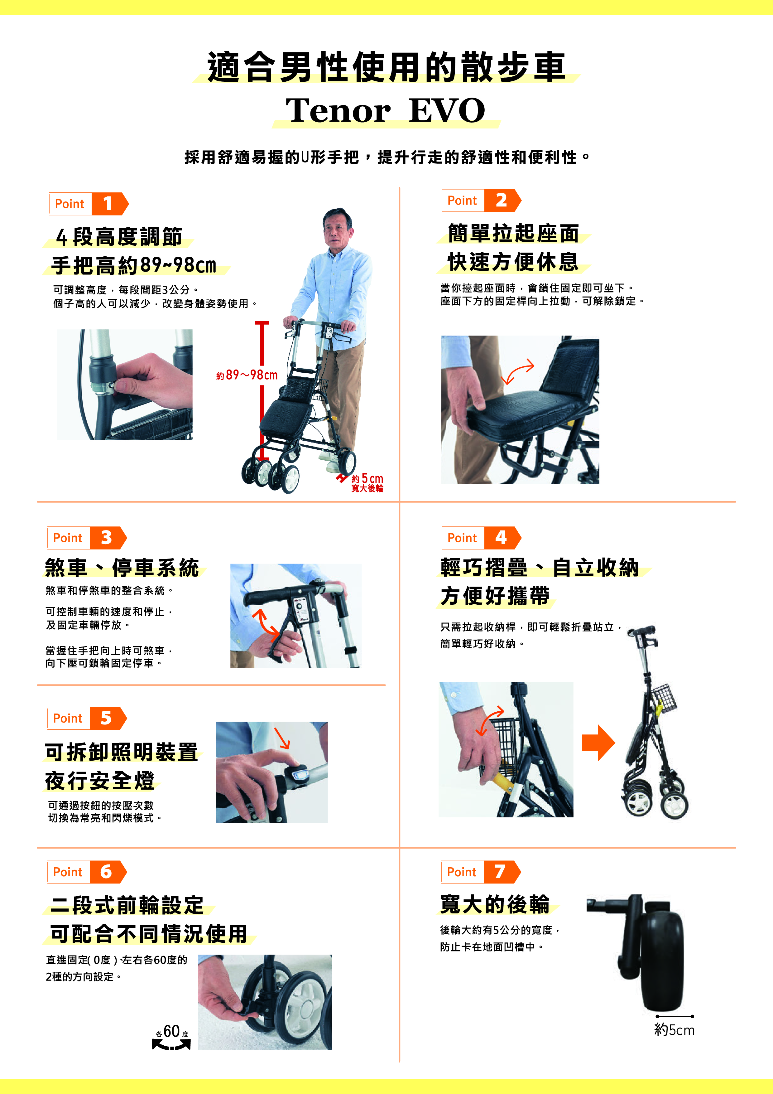 採用舒適易握的U形手把,提升行走的舒適性和便利性。