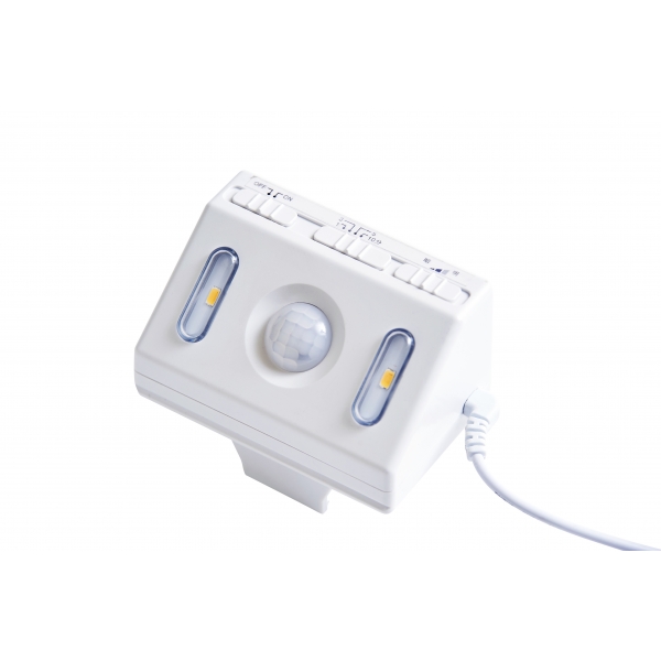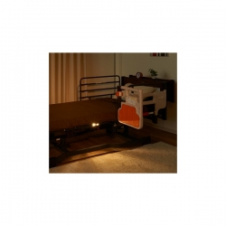 是一款專為夜間起身安全設計的床邊感應照明輔具。當使用者於夜間下床時,感應器自動啟動柔和光源,照亮腳部與地面動線,避免因黑暗導致踩空或跌倒。