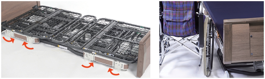 -可收納式護欄可以讓乘坐輪椅的人更靠近床邊並容易移乘