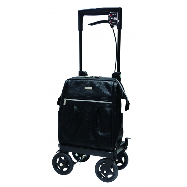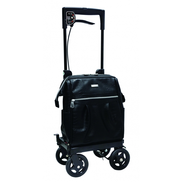 車板手向上煞車,向下鎖輪停車設計更安全。