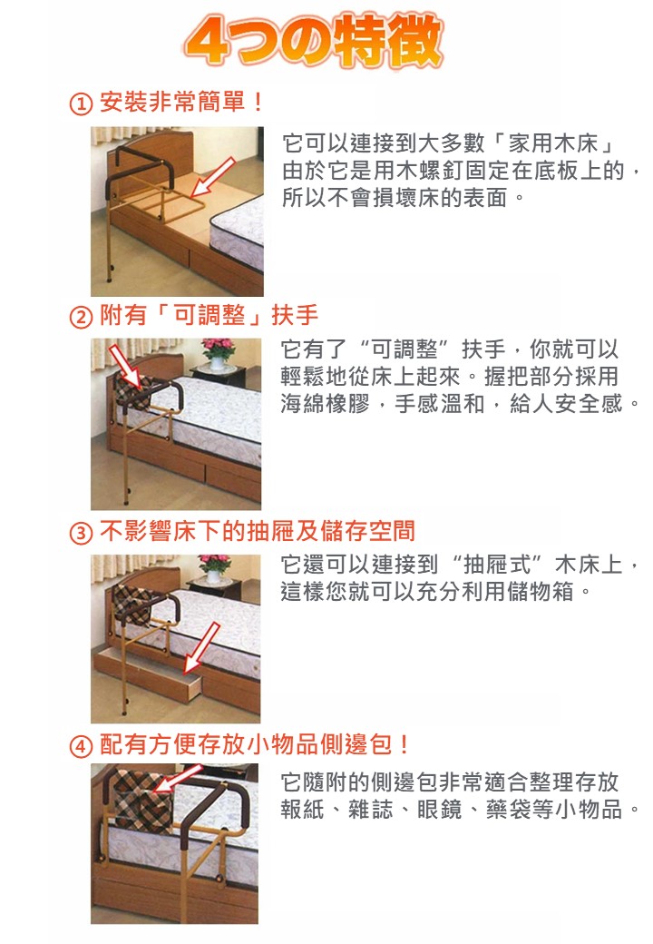 | 用途 | 床邊起身輔助扶手 木床固定式起身手把 |
