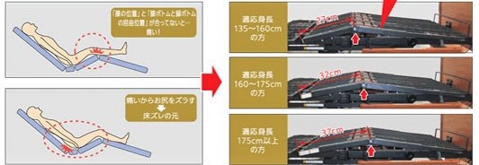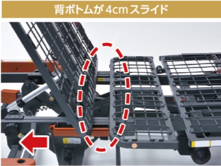 -防止背板升起時的身體向前滑動,而採用的3段膝位調節構造
