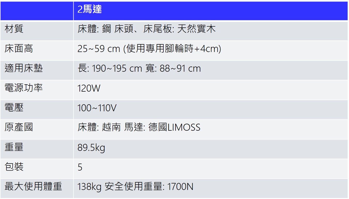 擁有三馬達功能的兩馬達電動床(可連動及升降)