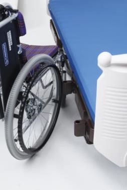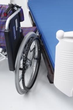 -收納式護欄可使輪椅更緊密貼近床側,提升移位時的安全性